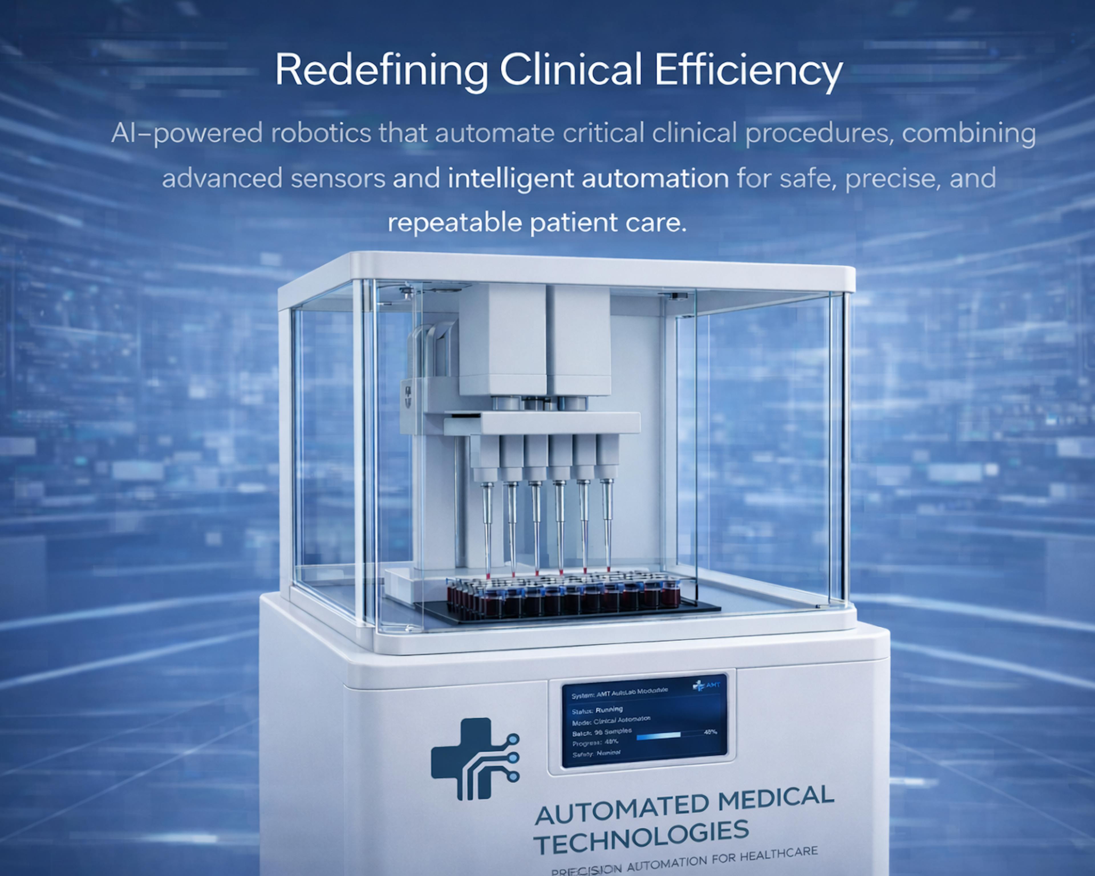 Automated Medical Technologies makes healthcare safer, faster, and more precise through the convergence of robotics, adaptive AI, and intelligent imaging.